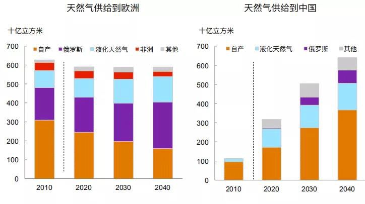 ◆ 在中国,尽管国内天然气产量大幅提升,但需求增长大于供应增长,导致2040年进口依存度上升超过40%。半数进口增量将由俄罗斯和其他独联体国家的管道气来满足,剩余增量来自液化天然气。