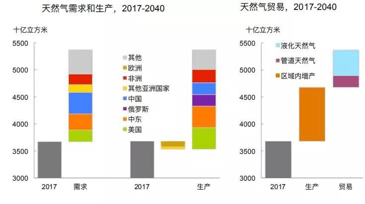◆ 在渐进转型情景下,天然气供需年均增长率为1.7%,即到2040年增长近50%,是唯一和可再生能源一样份额在展望期间增长的能源。