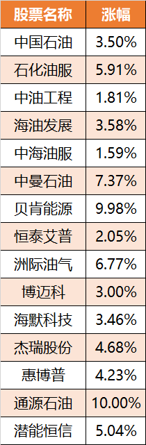 洲际油气、潜能恒信、通源石油、海默科技、中曼石油、贝肯能源、惠博普7只股票开盘涨停;