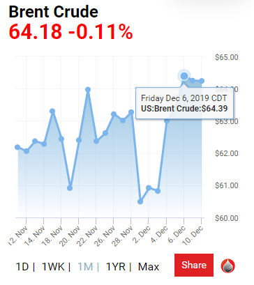 一些咨询公司和金融机构给出了这次扩大减产对明年油价影响的预期。高盛集团在此举之后上调了2020年布伦特原油价格预测,此前,对冲基金曾大幅削减对WTI原油的看涨押注。有分析师认为,这是所能预计的最佳结果。这为60美元的布伦特原油提供了一个底部支撑。明年,在全球经济改善之前,布伦特原油价格仍可能陷于60-65美元区间,然后我们可能在第二季度看到布伦特原油价格处于65-70美元区间。